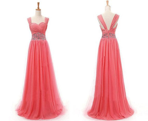 Pretty Watermelon Straps Chiffon Prom Dress 2016, Prom Dresses 2016, Formal Dresses, Evening Dresses,PD3900273