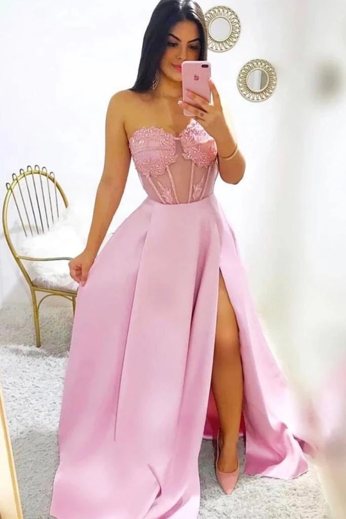 Modest A-Line Sweetheart Split Prom Dresses,PD49053