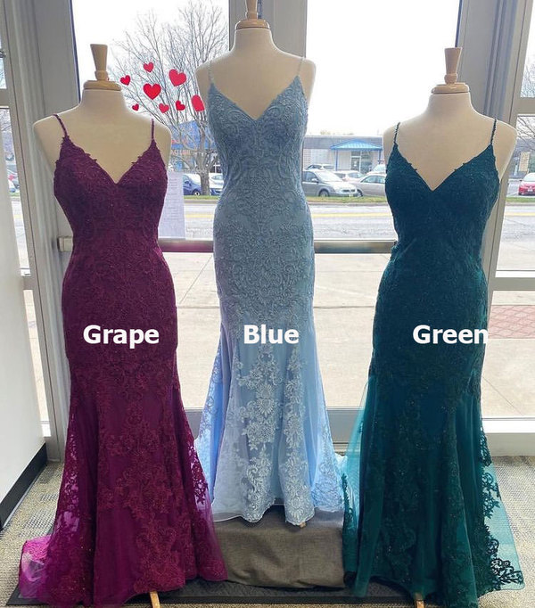 Mermaid Spaghetti Strap Prom Dresses Evening Gown with Appliques,PD49060