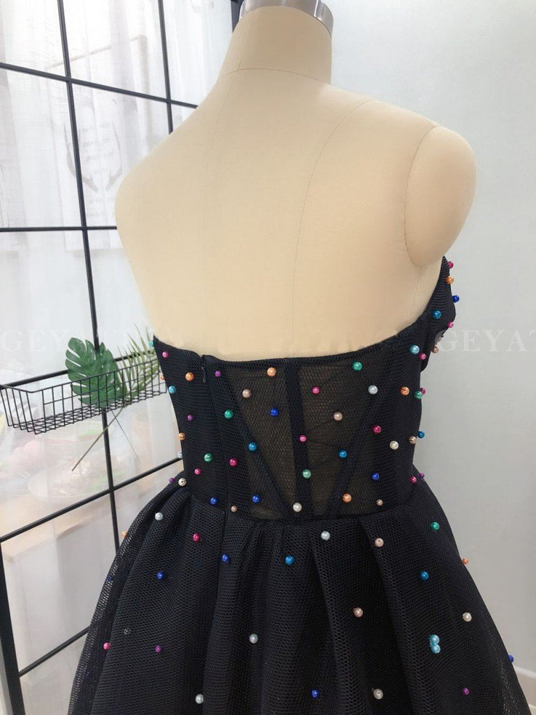 Elegant A Line Sweetheart Strapless Black Tulle Prom Dresses with Beading,PD49142
