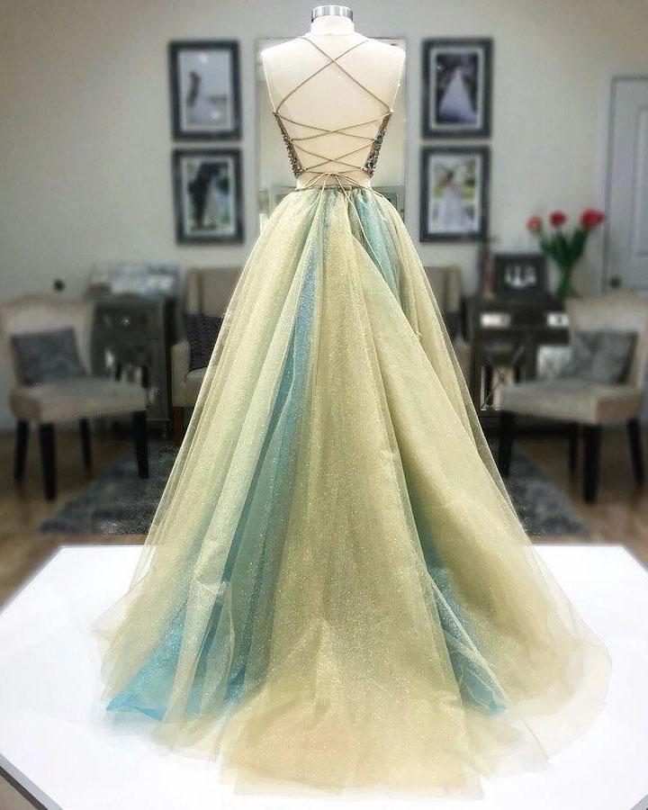 Modest Two Pieces Spaghetti Straps Beads Long Prom Dresses Cheap Formal Dresses,PD49151