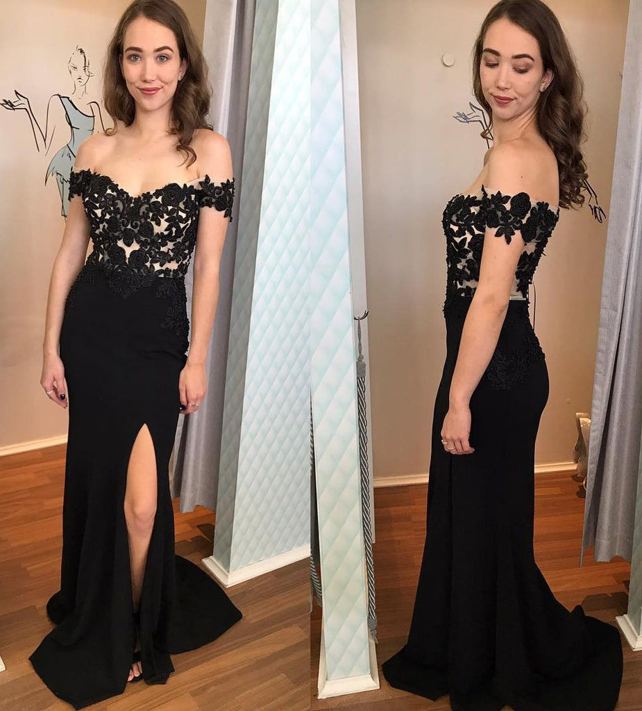Elegant Off the Shoulder Black Lace Appliques Prom Dresses, Sweetheart Formal Dresses,PD49223