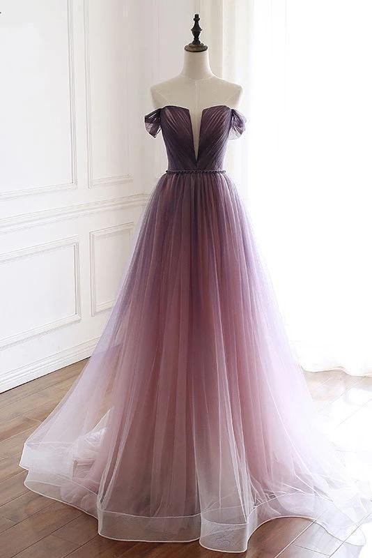 A Line Off the Shoulder Tulle Long Prom Dresses, Lace up Simple Party Dresses,PD49279
