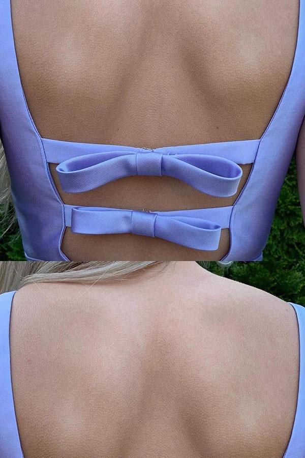 A Line Lavender V Neck Long Prom Dresses with Pockets, Satin Backless Evening Dresses,PD49285
