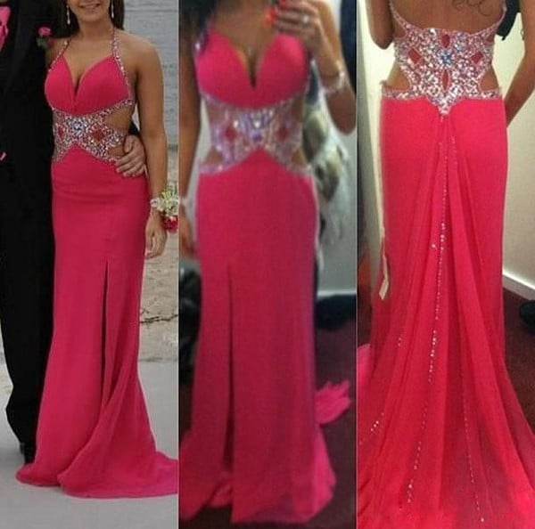 Classy Sexy Mermaid Long Prom Dresses,Halter Beaded Lace Evening Dresses, With Slit Dresses For Prom,Chiffon Floor-Length Evening Dresses,PD390036