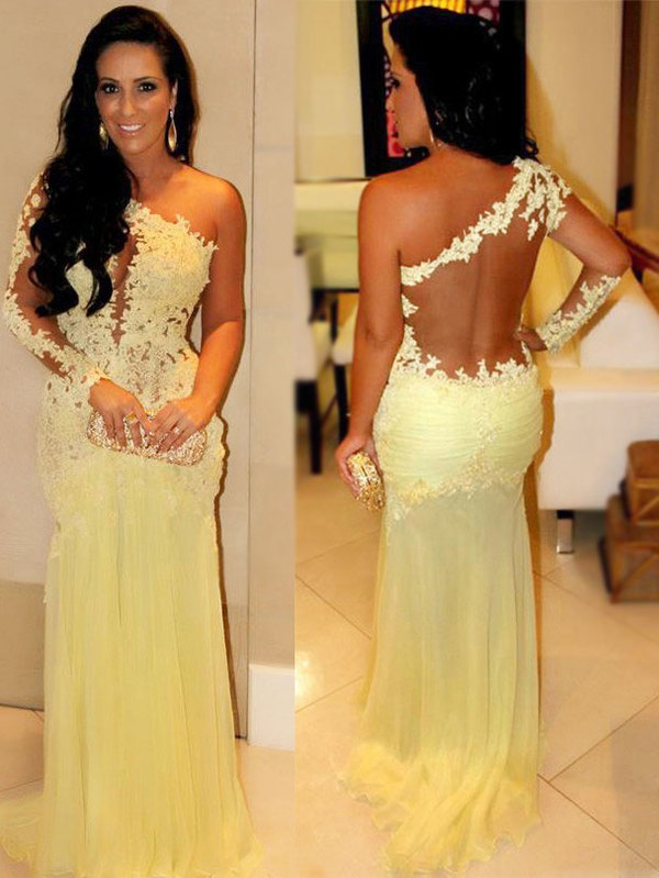 Elegant Prom Dresses,One-Shoulder Prom Dresses,Appliques Prom Dresses,Long Sleeve Prom Dresses,Sexy Prom Dresses,PD3900117