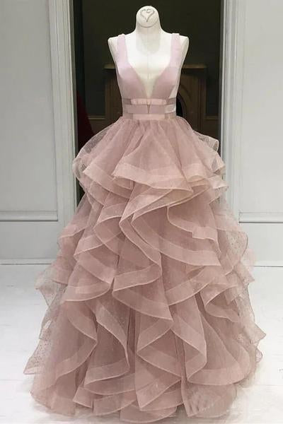 A Line Yellow Multi-layered Polka Dot Organza Prom Dresses Long Sweet 16,PD49046