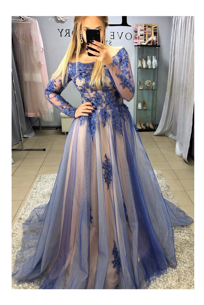 A-Line Long Sleeves Sweep Train Prom Dresses,PD49092