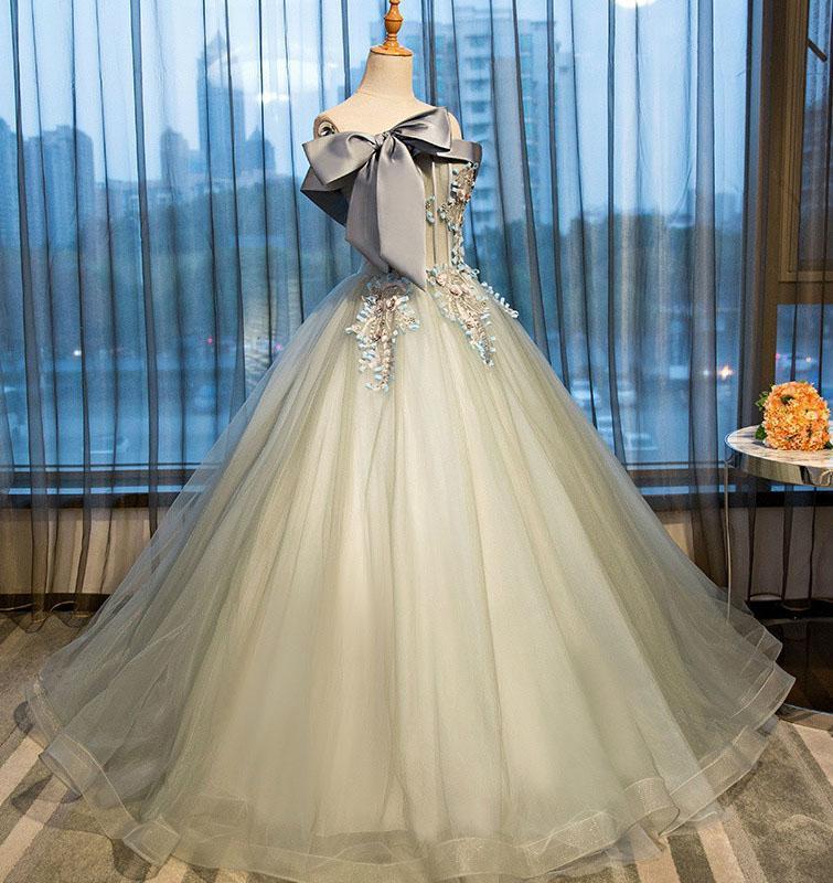 Ball Gown Strapless Appliques Beads Tulle Quinceanera Dresses with Lace up, Prom Dresses,PD49145