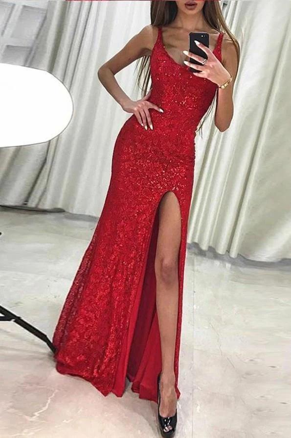 Sexy Sequins Sheath V Neck Prom Dresses With Split, Long Evening Dresses,PD49186