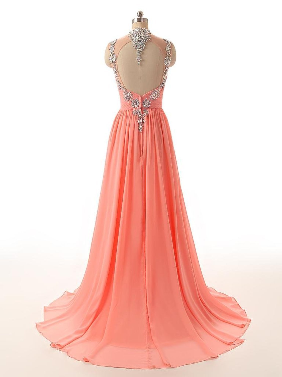 Sparkling Crystals Evening Dresses,Chiffon Evening Dresses,Open Back Evening Dresses,Long Evening Dresses,PD3900395