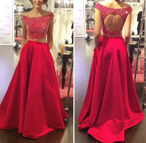 Charming Prom Dresses,Two Pieces Prom Dresses,O-Neck Prom Dresses,Beading Prom Dresses,Backless Prom Dresses,PD390017