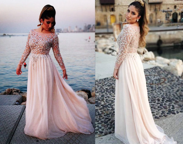 Gorgeous Long Chiffon Prom Dresses,Long Sleeves Prom Gowns,Beading Evening Dresses,Special Occasion Dresses,PD390054