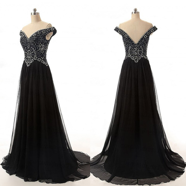 Classy Black A-Line Prom Dresses,V-Neck Prom Dresses,Chiffon Prom Dresses,Beading Prom Dresses,Long Prom Dresses,PD3900212