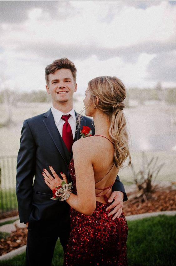 Sexy Mermaid Sequins Burgundy Long Prom Dresses, Cheap Evening Dresses,PD49193