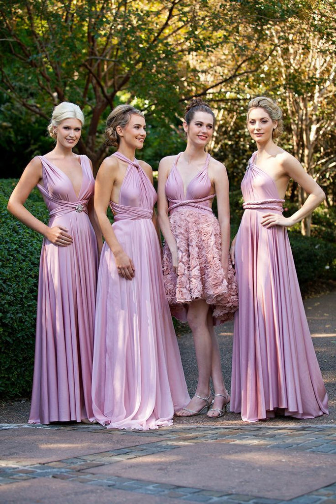 Charming Lilac A-Line V-Neck Floor-Length Convertible Bridesmaid Dresses,PD49244