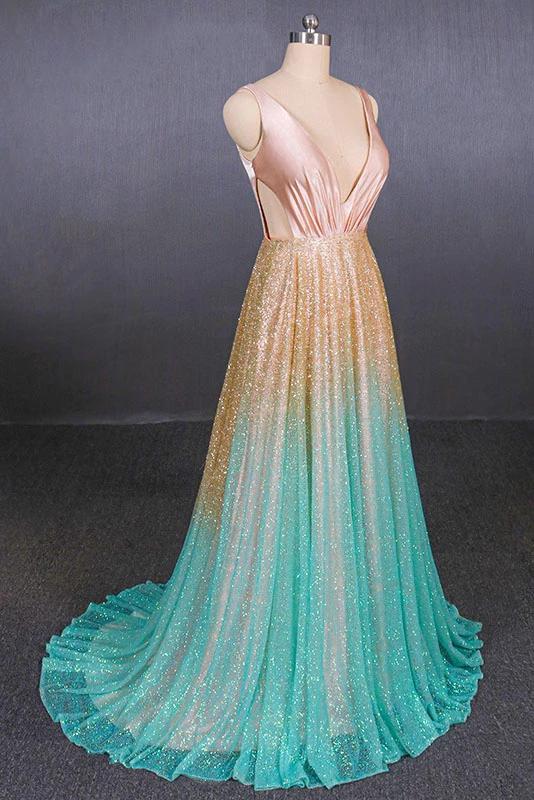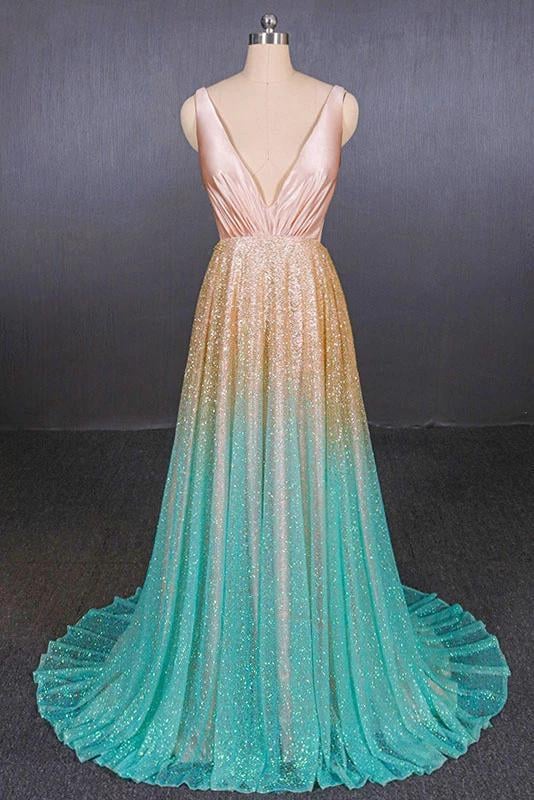 Black V Neck One Shoulder Ombre Long Evening Dresses, Unique Cheap Prom Dresses ,PD49250