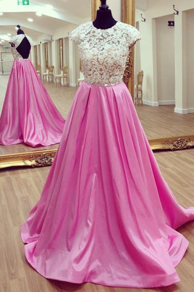White lace open back long rosy satin prom dress lace graduation,PD492510