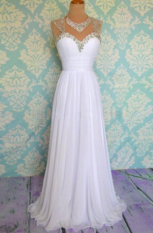 White Beading Long Chiffon Prom Dresses Evening Dresses,PD49257